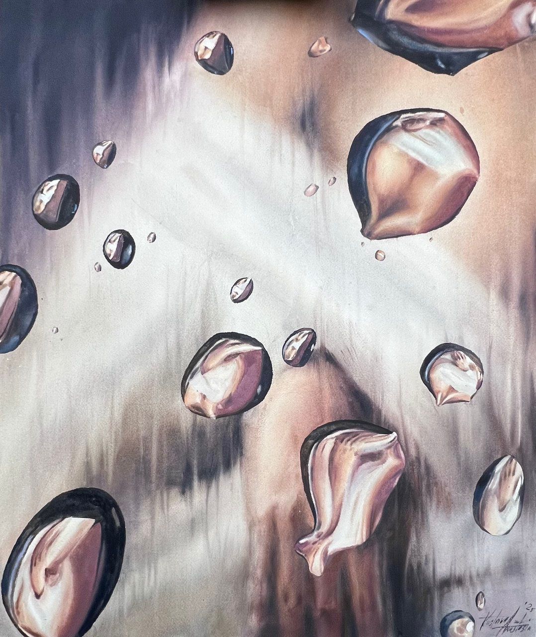 Для меня синергия — это непрерывное со-существование внутреннего и окружающего, состояние, в котором невозможно провести чёткую границу между человеком и пространством. Я работаю с металлом и водой как со средами отражения и резонанса. В зеркальной поверхности и ряби видны не только формы — видны отношения: прикосновение взгляда, дыхание пространства, ответ среды на присутствие. В этих работах зритель становится частью процесса: любое движение меняет образ, а материал отвечает взаимностью. Так проявляется взаимное влияние — мы формируем среду, и она формирует нас.