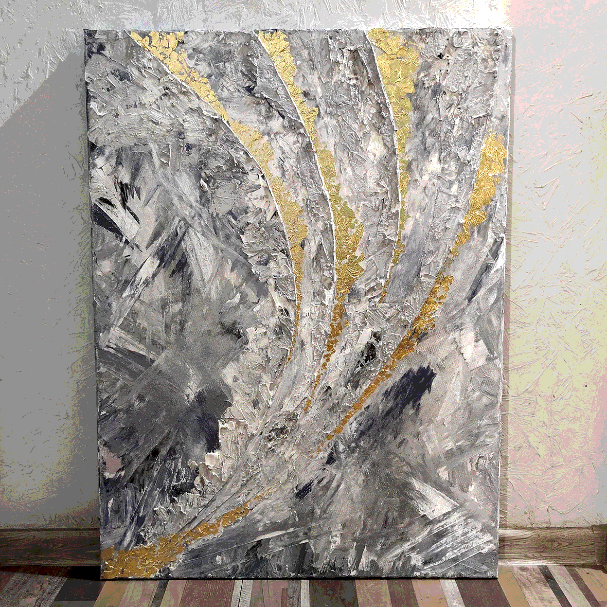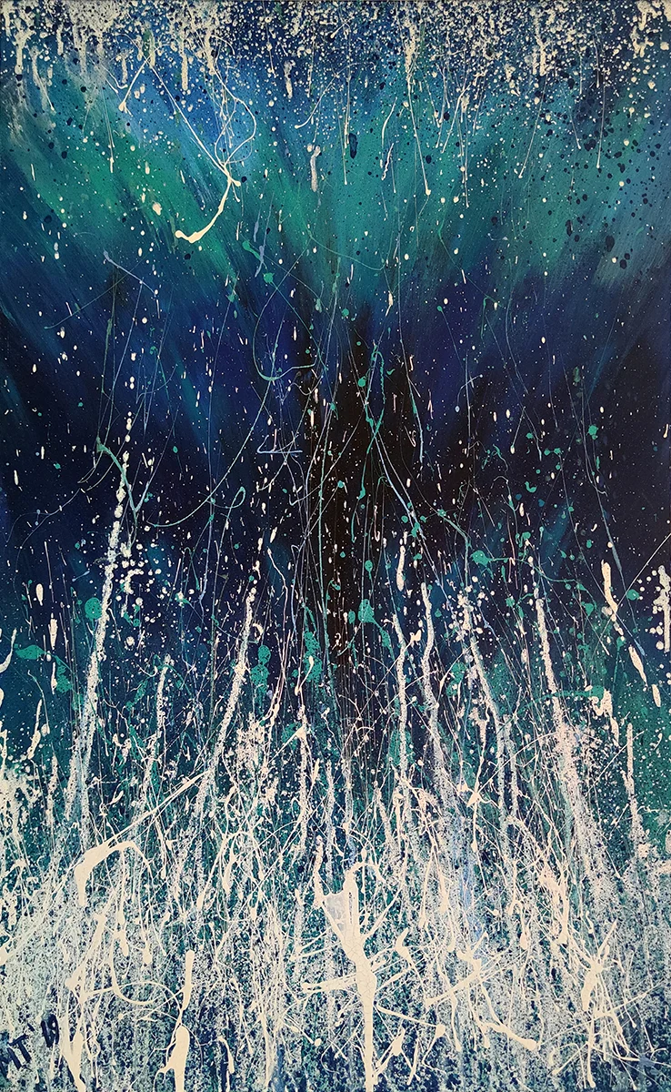 подпись художника находится на обороте, что дает возможность вешать любой холст как вертикально, так и горизонтально, меняя форму и размер композиции.