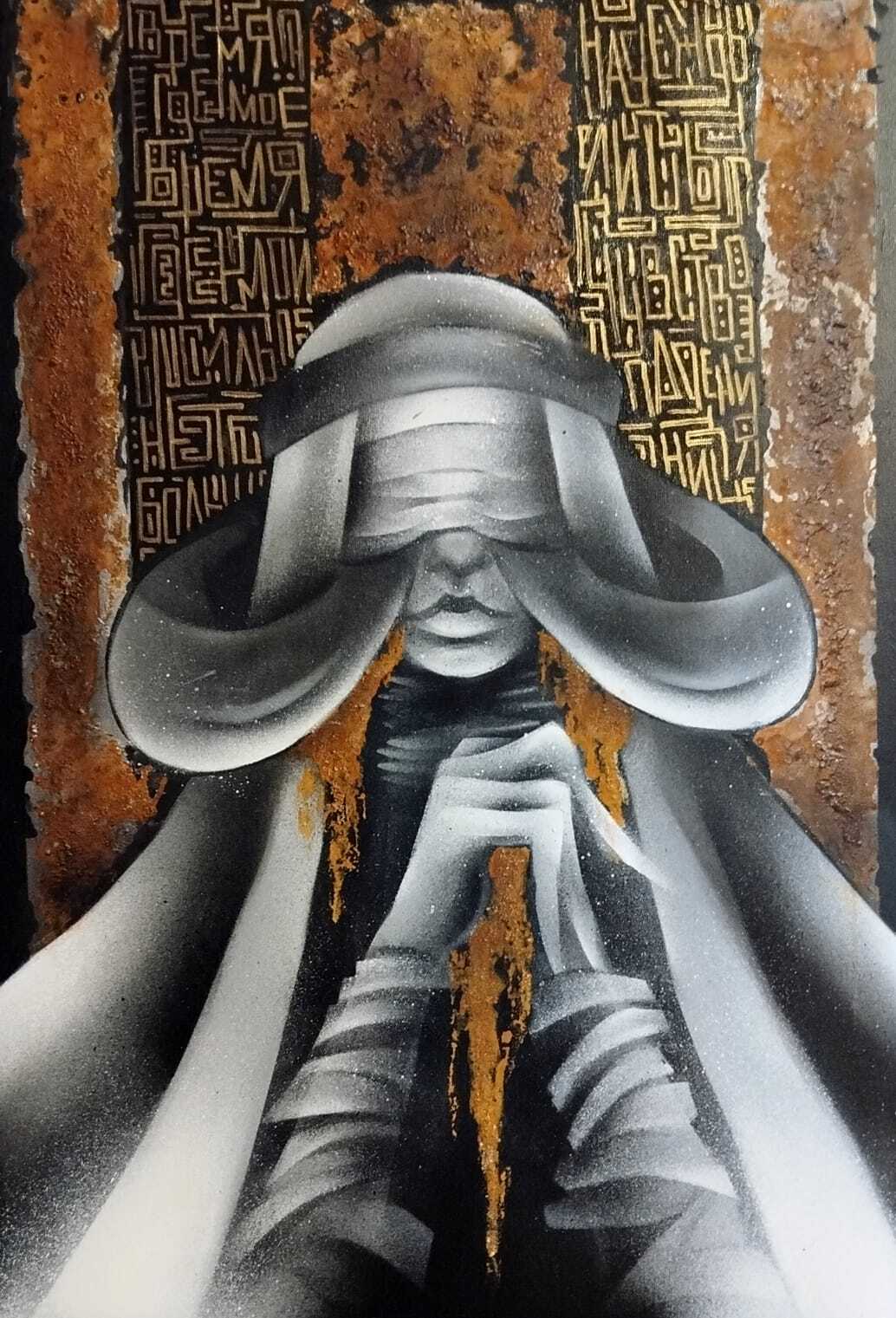 Создает проекты любого масштаба: от миниатюрной сувенирной продукции до монументальных фасадов. Владеет разнообразными техниками — от масляной живописи и акварели до мозаики и скульптуры, но главным средством выражения остается граффити. Следует принципу творческой свободы под девизом #всеголишьискусство, где каждый проект — это спонтанный перформанс, свободный от условностей.